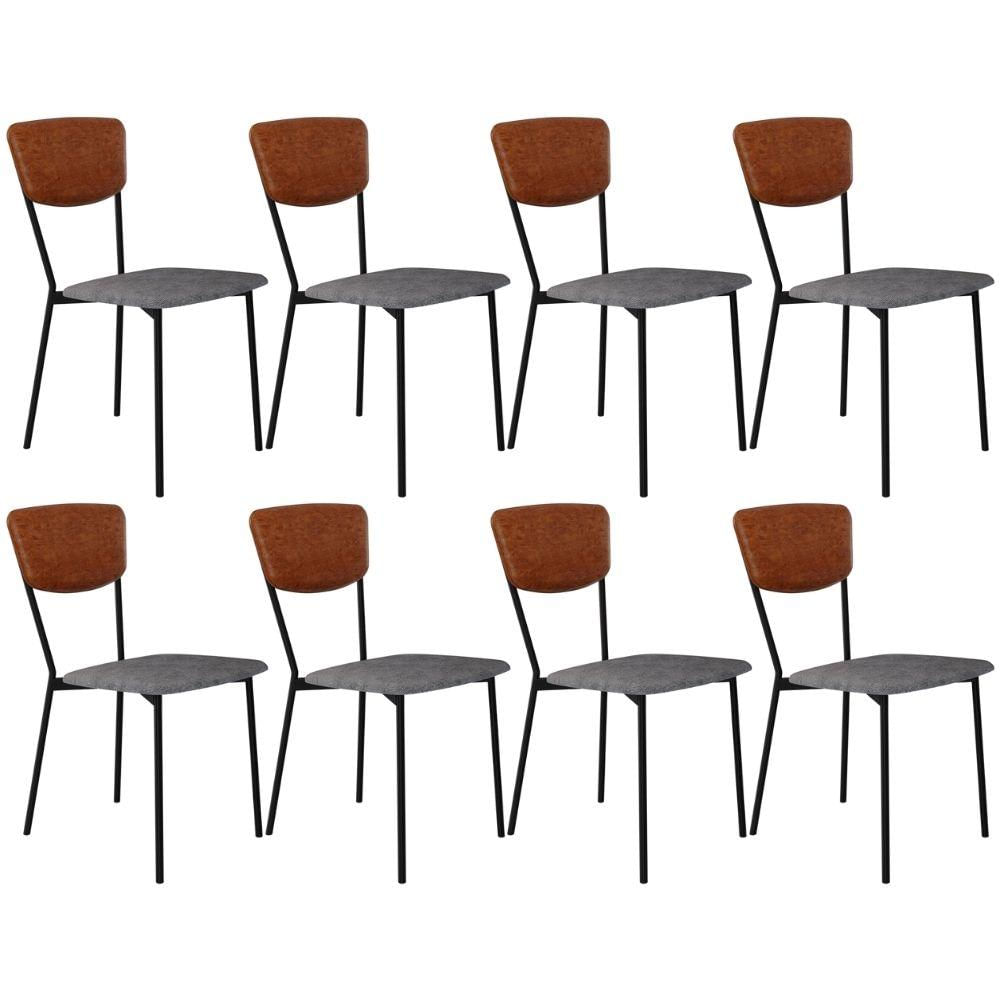 Kit 08 Cadeira Para Sala de Jantar Village Preto C01 Linho Prata Courino Caramelo - Lyam Decor