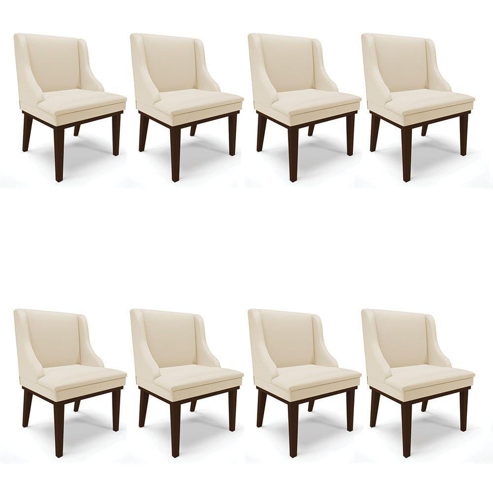 Kit 08 Cadeiras De Jantar Liz Corino Bege Base Fixa Madeira Tabaco - D'rossi