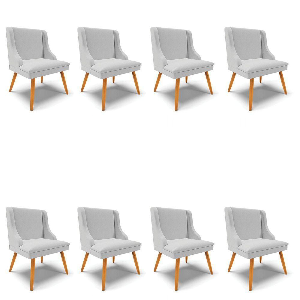 Estrutura:Madeira Eucalipto Espuma:D-23 Tecido:Linho Tipo de pés:Palito Palito Castanho Peso suportado:Até 120 Kg Garantia:90 dias contra defeito de fabricação Montagem:O produto vai montado, apenas rosquear os pés Instruções de limpeza:Utilizar um pano limpo e levemente úmido Você irá receber:04 volumes com 08 produtos