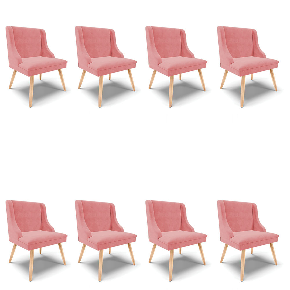 Kit 08 Cadeiras de Jantar Liz Suede Rosê Pés Palito Natural D03 - D'Rossi