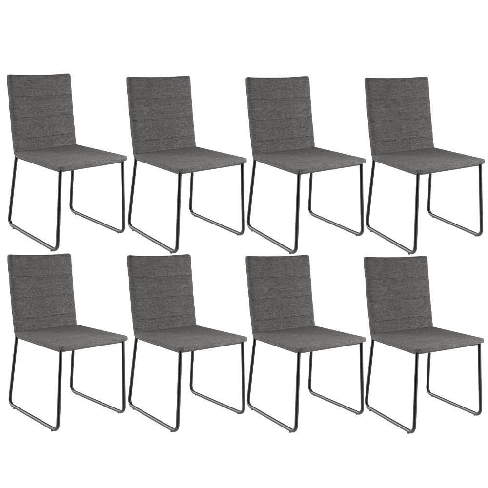 Kit 08 Cadeiras Decorativa Estofada Para Sala De Jantar Preto Maya L02 Linho Cinza Escuro - Lyam Decor