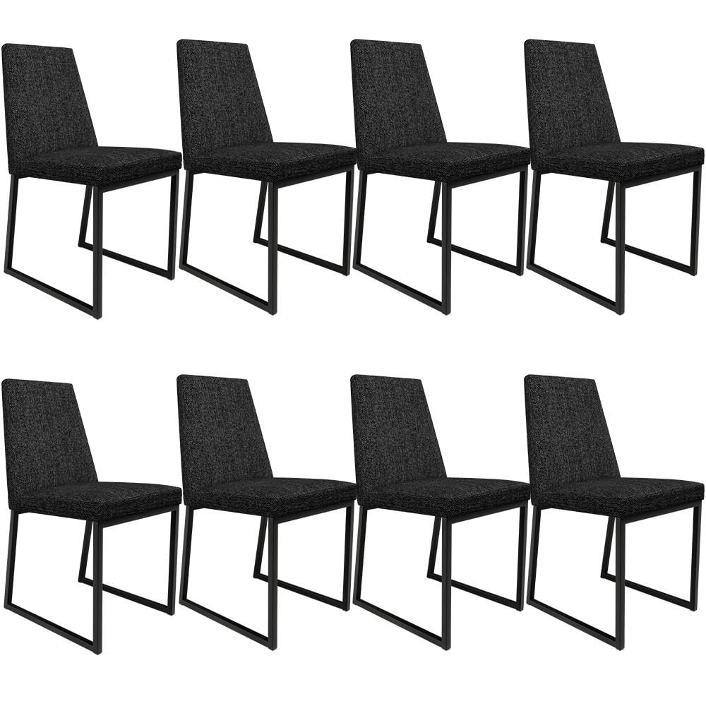 Kit 08 Cadeiras Decorativas Estofada Para Sala de Jantar Dafne L02 Linho Chumbo - Lyam Decor