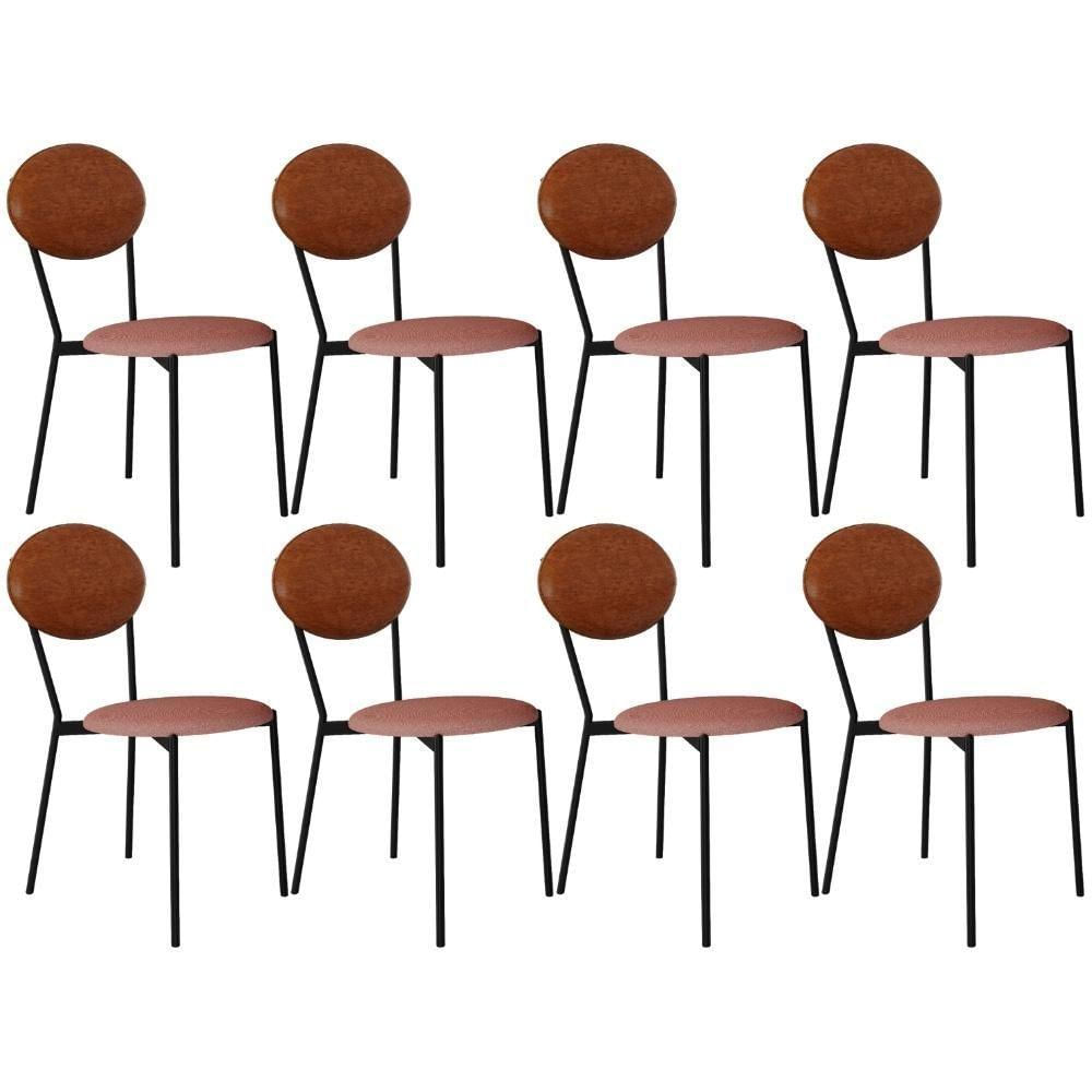 Kit 08 Cadeiras Estofada Para Sala De Jantar Azuri Preto C01 Linho Rosê Courino Caramelo - Lyam Decor
