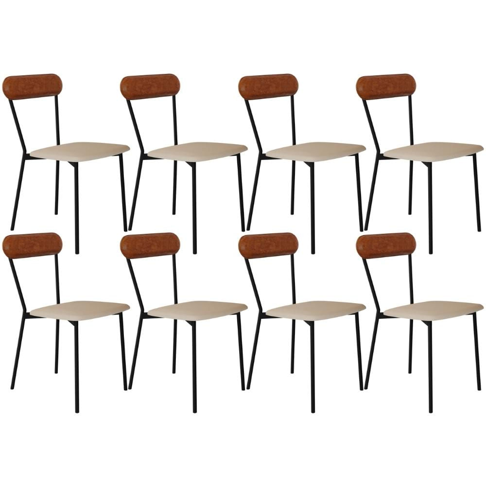 Kit 08 Cadeiras Estofada Para Sala de Jantar Liora Preto C01 Linho Areia Courino Caramelo - Lyam Decor