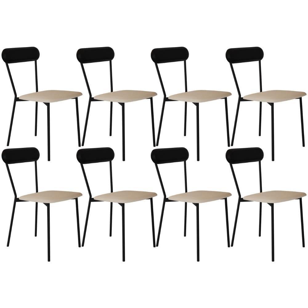 Kit 08 Cadeiras Estofada Para Sala de Jantar Liora Preto C01 Linho Areia Courino Preto - Lyam Decor