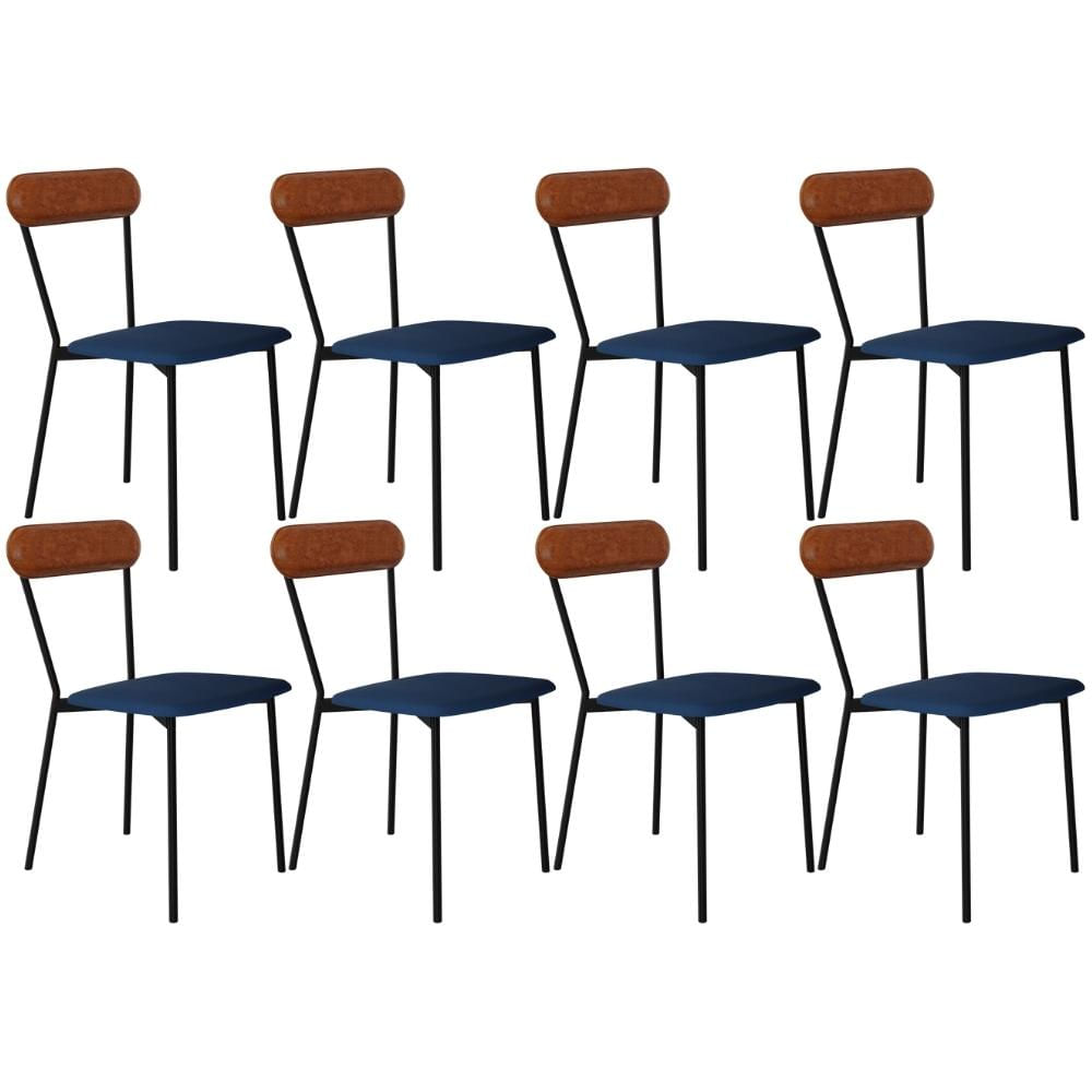 Kit 08 Cadeiras Estofada Para Sala de Jantar Liora Preto C01 Linho Azul Courino Caramelo - Lyam Decor