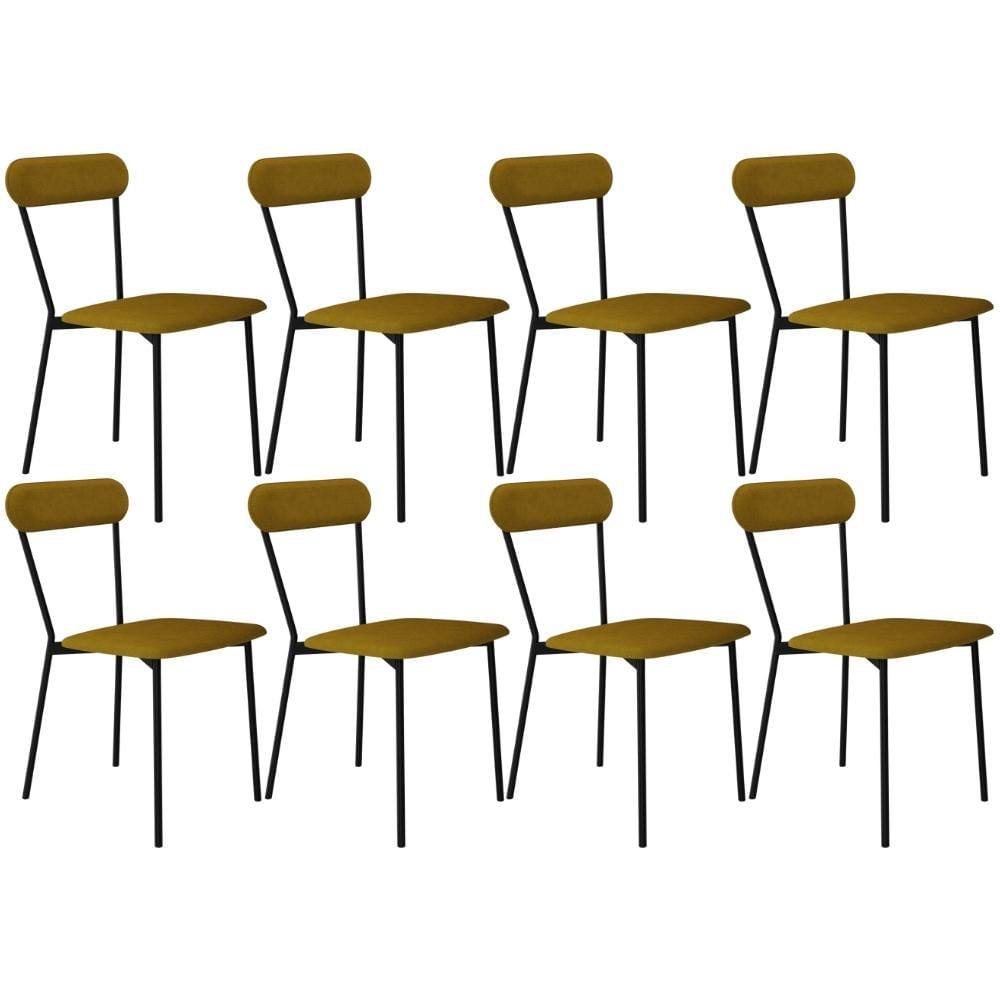 Kit 08 Cadeiras Estofada Para Sala de Jantar Liora Preto C01 Linho Mostarda - Lyam Decor
