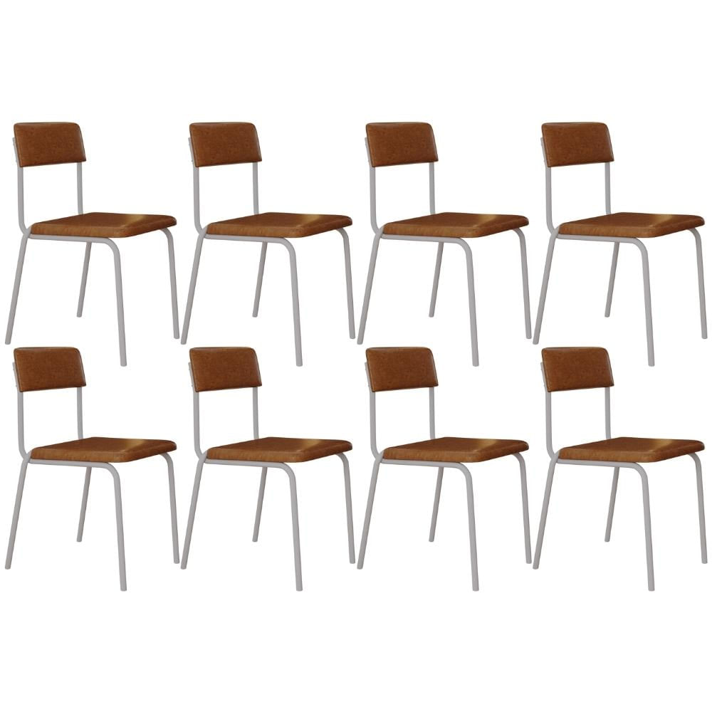 Kit 08 Cadeiras Estofada Para Sala de Jantar Sense Branco C01 Courino Caramelo - Lyam Decor