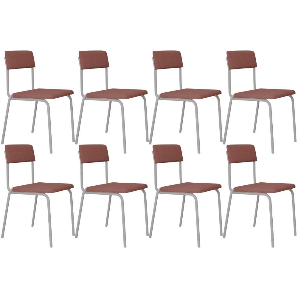 Kit 08 Cadeiras Estofada Para Sala de Jantar Sense Branco C01 Linho Rosê - Lyam Decor