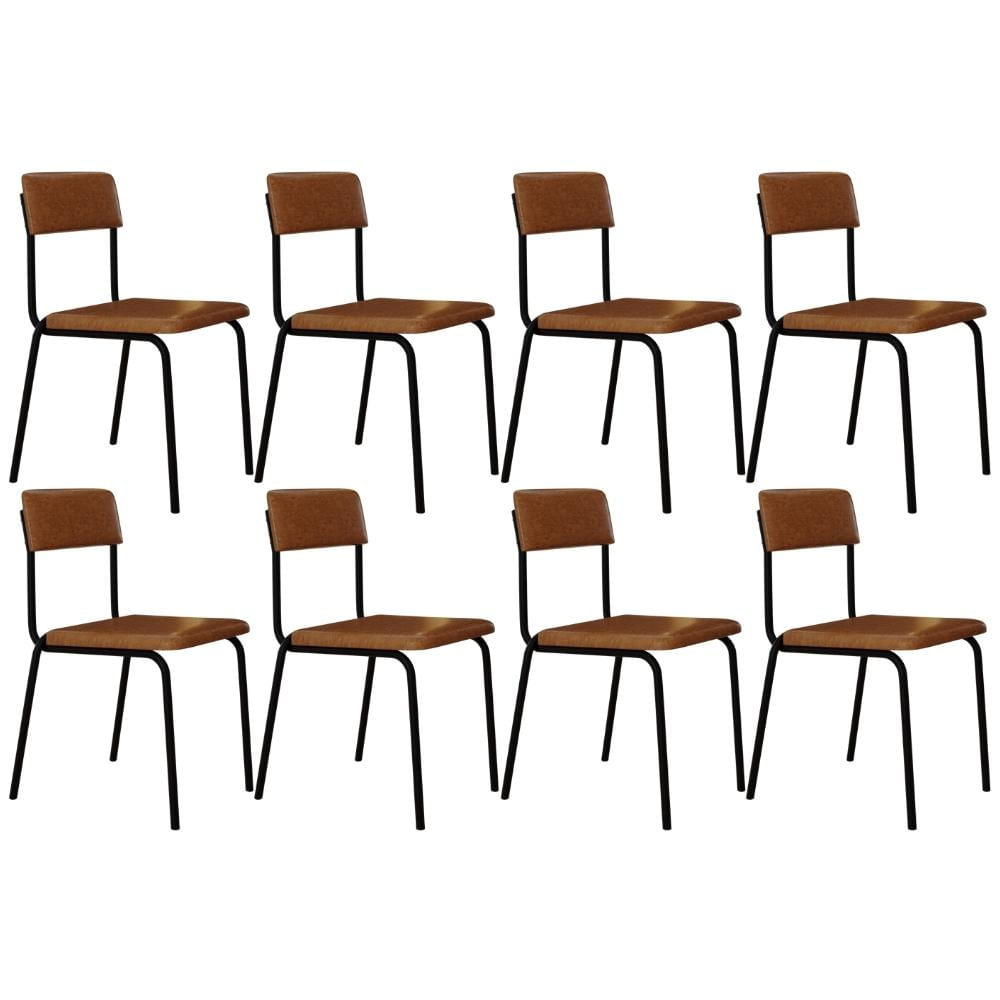 Kit 08 Cadeiras Estofada Para Sala de Jantar Sense Preto C01 Courino Caramelo - Lyam Decor