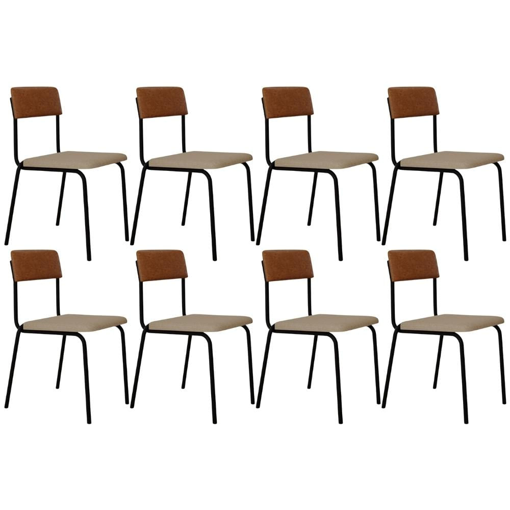 Kit 08 Cadeiras Estofada Para Sala de Jantar Sense Preto C01 Linho Areia Courino Caramelo - Lyam Decor