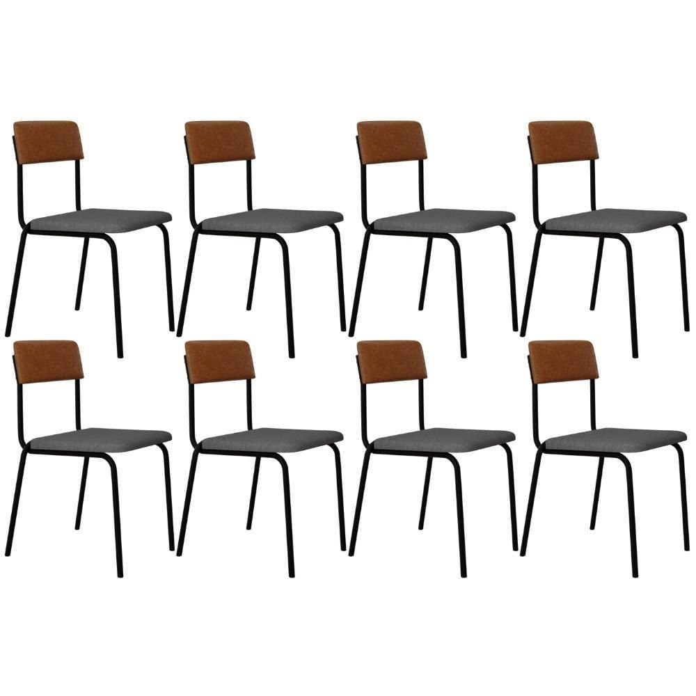 Kit 08 Cadeiras Estofada Para Sala De Jantar Sense Preto C01 Linho Cinza Claro Courino Caramelo - Lyam Decor