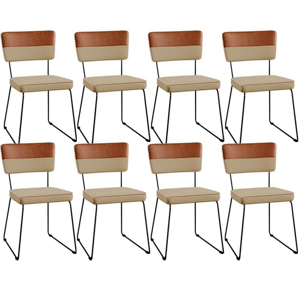 Kit 08 Cadeiras Decorativas Allana L02 Faixa Couríssimo Camel Linho Bege Escuro - Lyam Decor