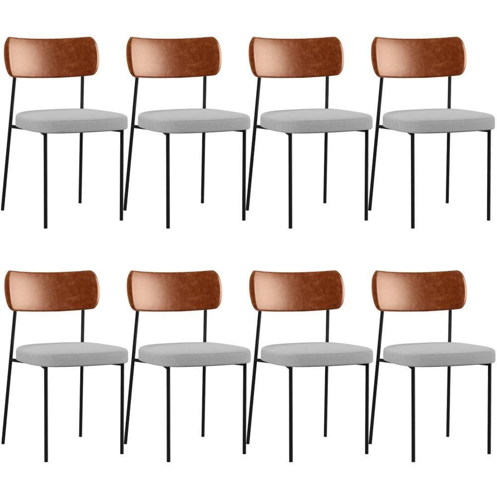 Kit 08 Cadeiras Para Sala De Jantar Melina L02 Couríssimo Camel Linho Cinza - Lyam Decor