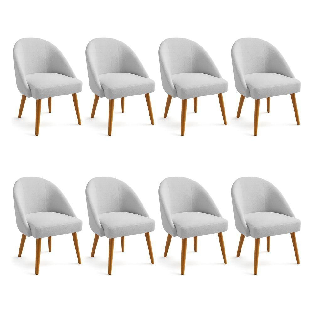 Kit 08 Cadeiras Poltrona De Jantar Estofada Luna Boucle Cinza Pés Palito Castanho - Pallazio