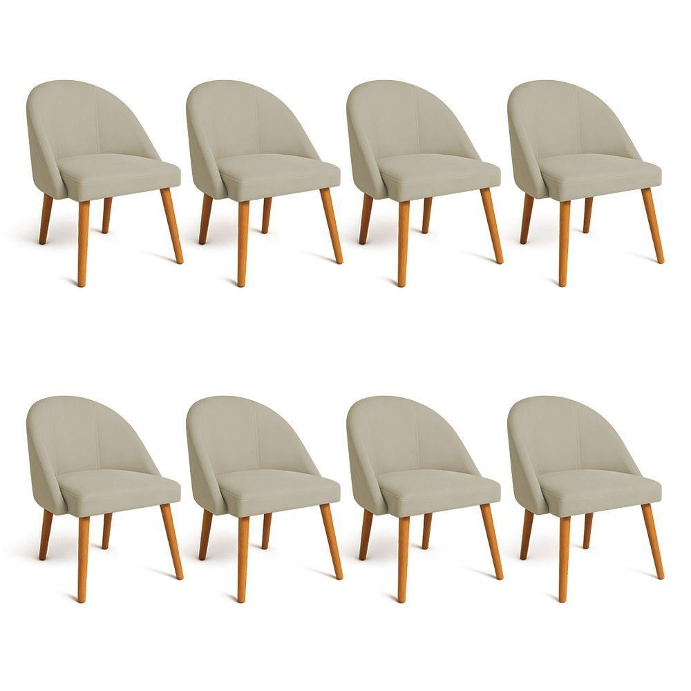 Kit 08 Cadeiras Poltrona De Jantar Luna Suede Capuccino Pés Palito Castanho - Pallazio