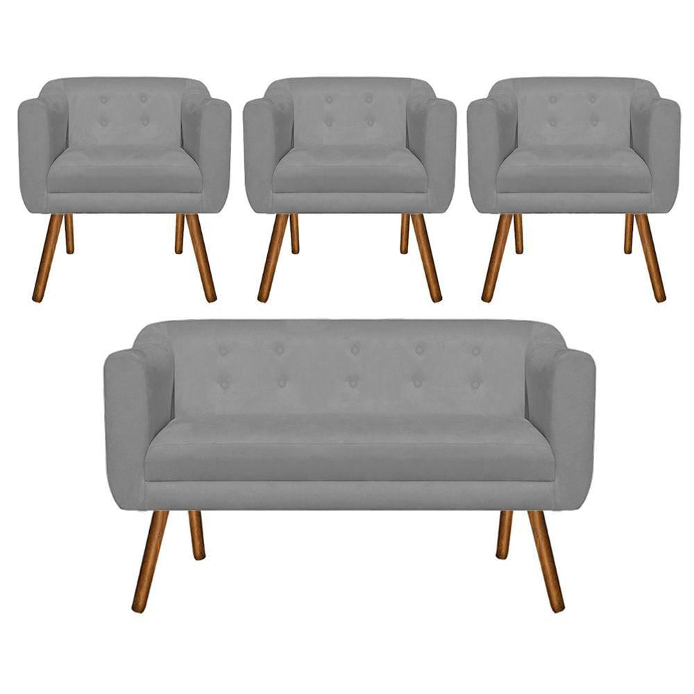 Kit 1 Namoradeira e 3 Poltrona Julia Suede Grafite Pés Palito Castanho D'Rossi