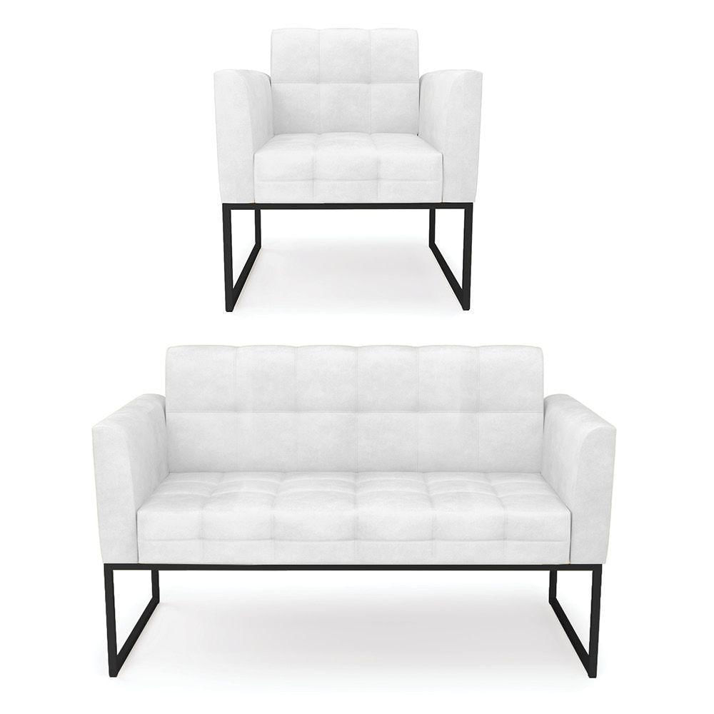 Kit 1 Sofá Namoradeira E 1 Poltrona Elisa Corano Base Metálica Industrial Preto - D'rossi Cor Branco