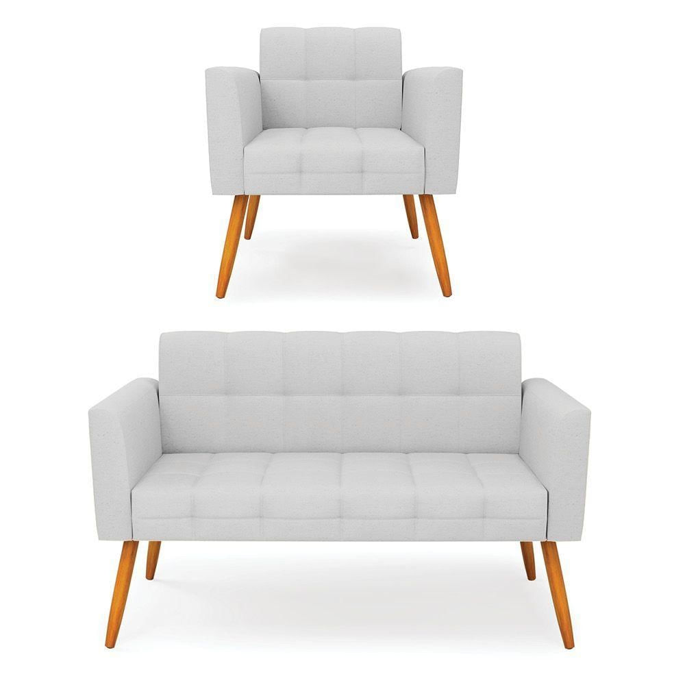 Kit 1 Sofá Namoradeira E 1 Poltrona Elisa Linho Cinza A05 Pés Palito Castanho - D'rossi