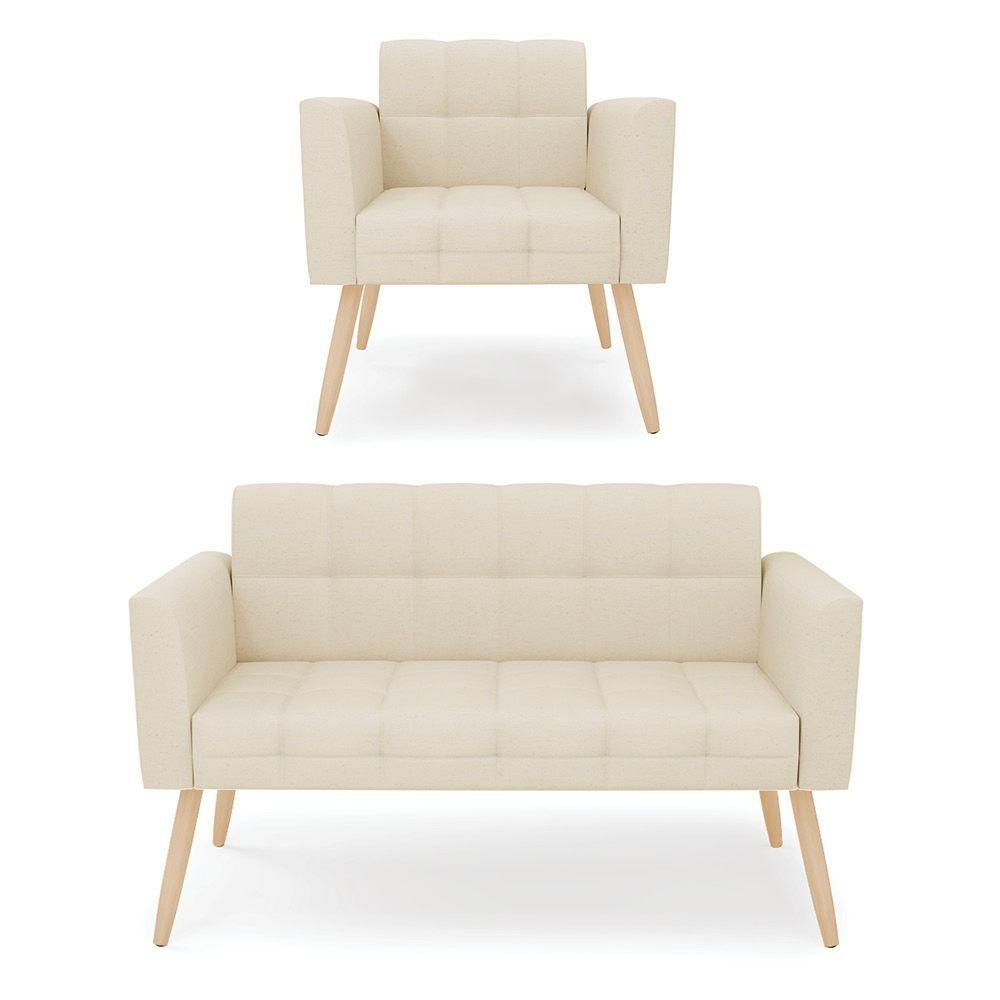 Kit 1 Sofá Namoradeira E 1 Poltrona Elisa Linho Pés Palito - D'rossi Cor A19 Bege