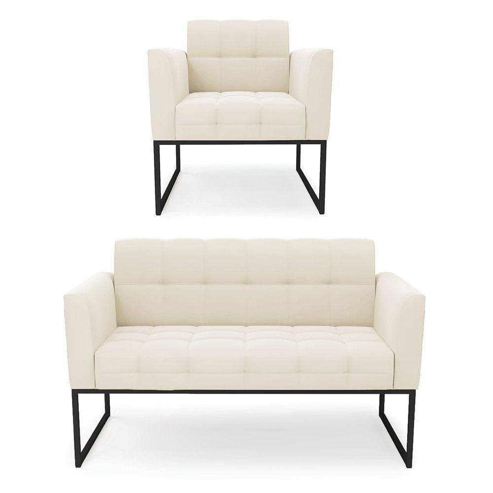 Kit 1 Sofá Namoradeira E 1 Poltrona Elisa Veludo Base Metálica Industrial Preto - D'rossi Cor Bege