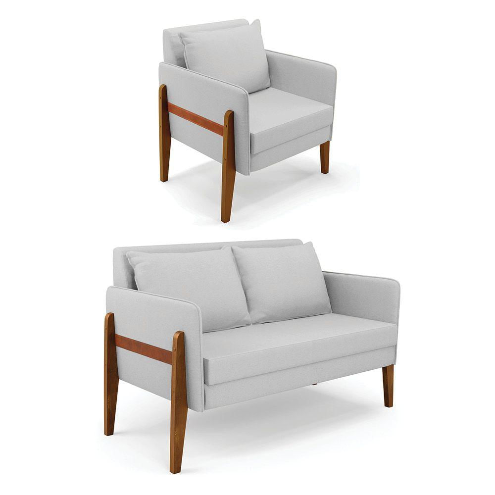 Kit 1 Sofá Namoradeira E 1 Poltrona Lana Linho Base De Madeira - D'rossi Cor A05 Cinza
