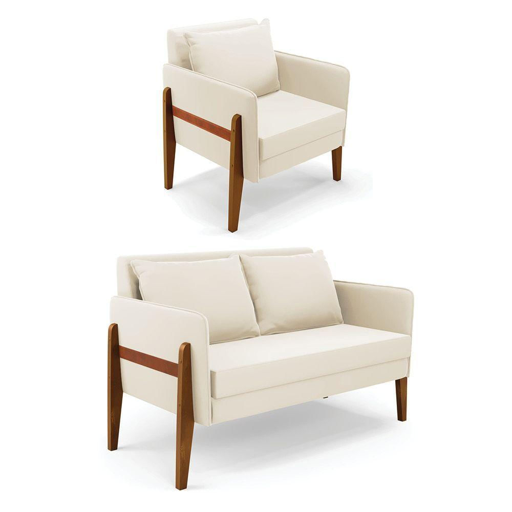 Kit 1 Sofá Namoradeira E 1 Poltrona Lana Veludo Bege Base De Madeira - D'rossi