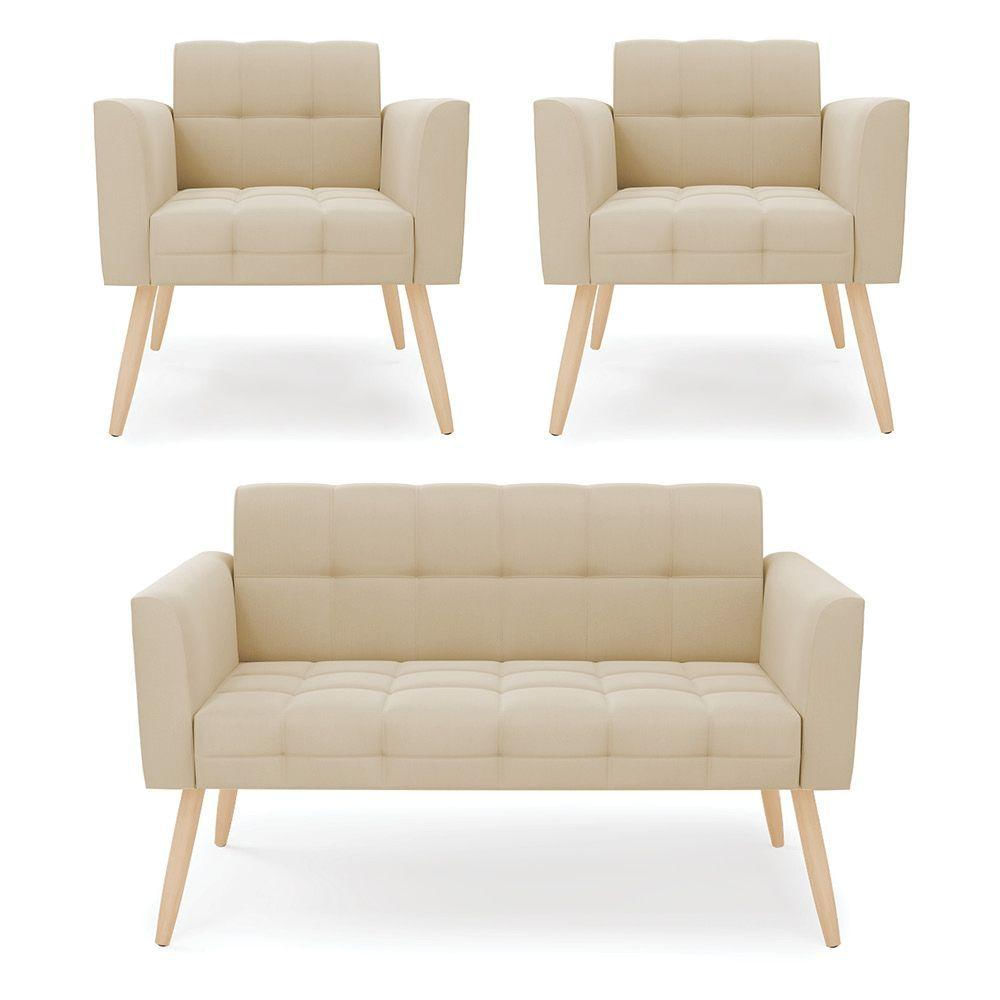 Kit 1 Sofá Namoradeira E 2 Poltronas Elisa Suede Bege Pés Palito - D'rossi