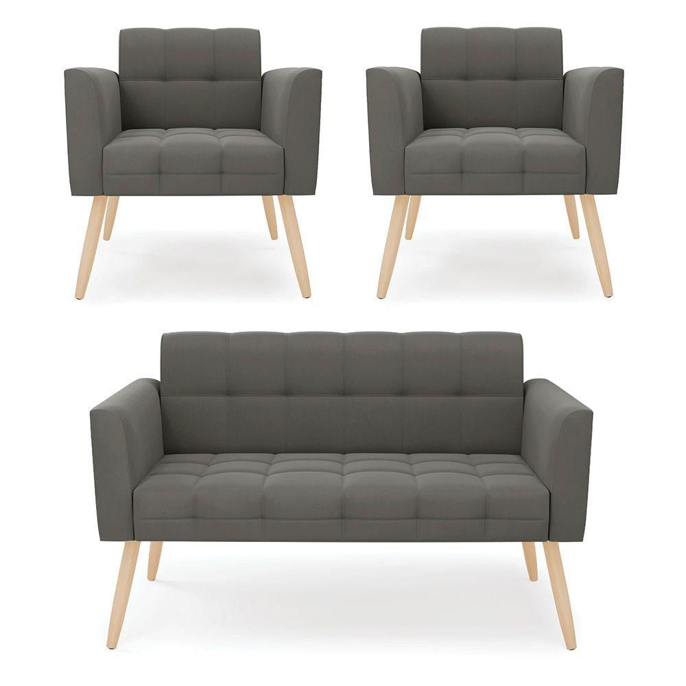 Kit 1 Sofá Namoradeira E 2 Poltronas Elisa Suede Grafite Pés Palito - D'rossi