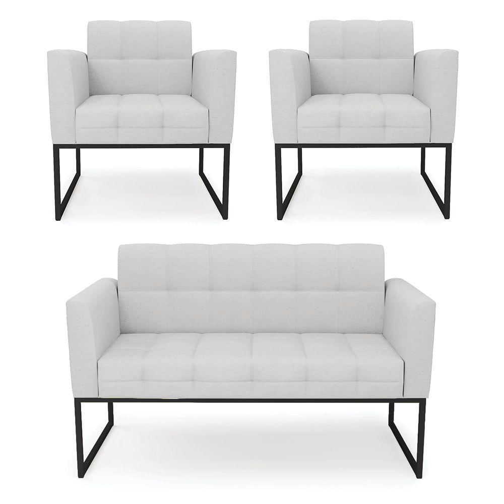 Kit 1 Sofá Namoradeira E 2 Poltronas Elisa Linho Base Metálica Industrial Preto - D'rossi Cor A05 Cinza
