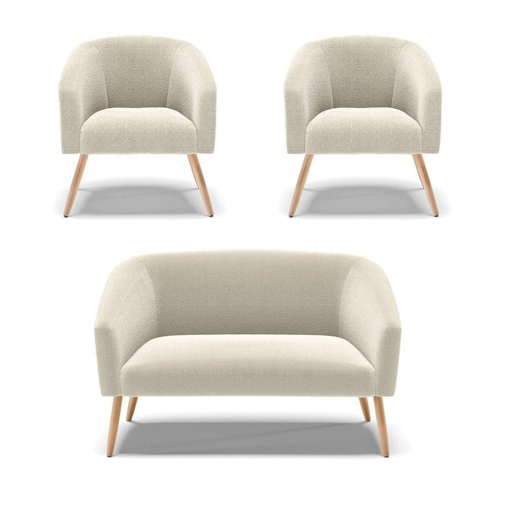 Kit 1 Sofá Namoradeira E 2 Poltronas Stella Bouclê Pés Palito Natural - D'rossi Cor Bege