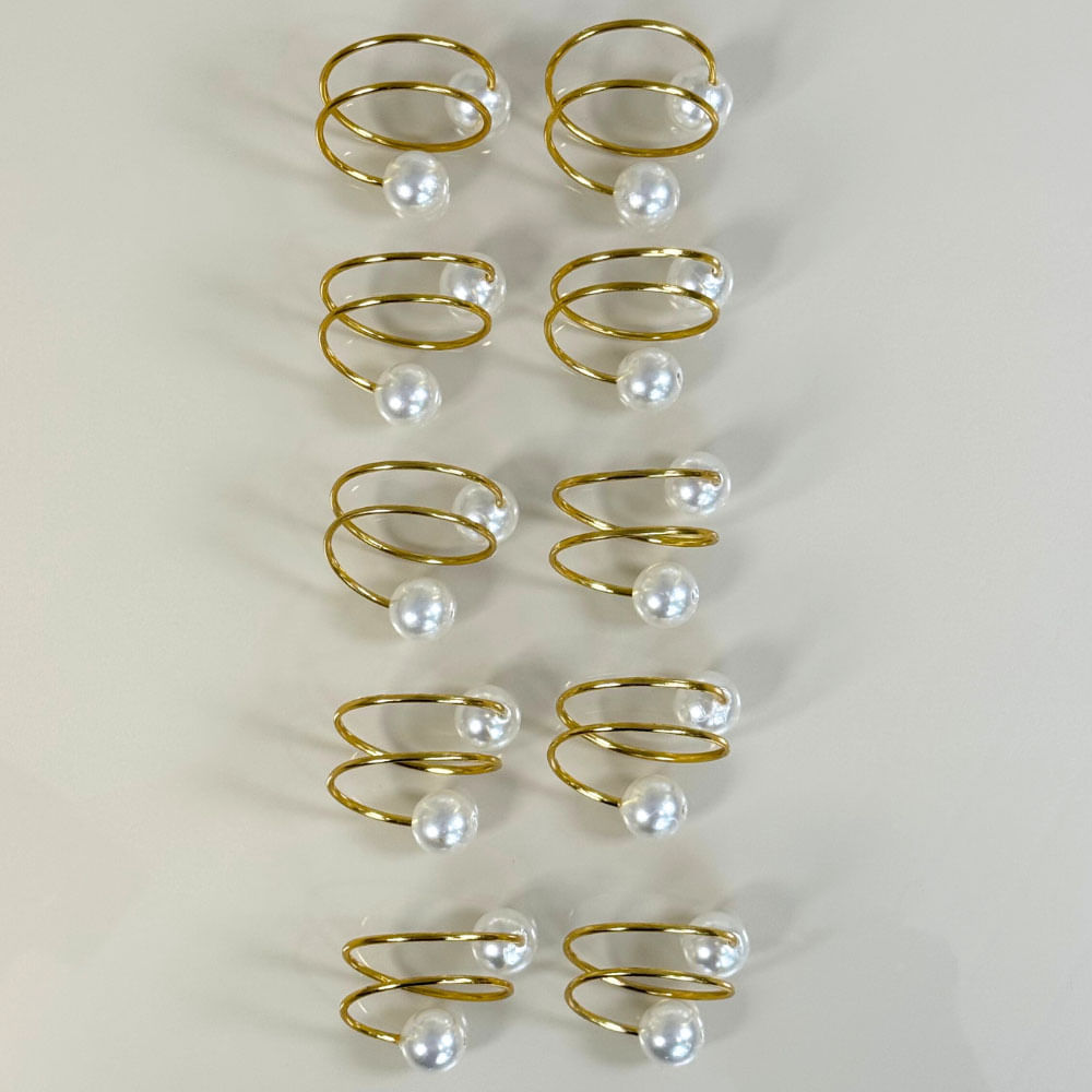Kit 10 Anéis Para Guardanapos 4,5cm x 4,5cm Pérola Duas Voltas Argola Metal Mesa Posta - Dourado