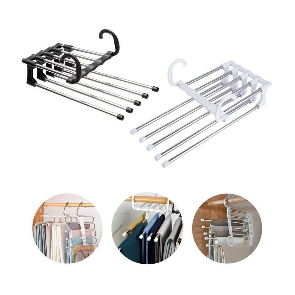 Cabide de Aço Inox com 5 Divisórias Retrátil Multiuso