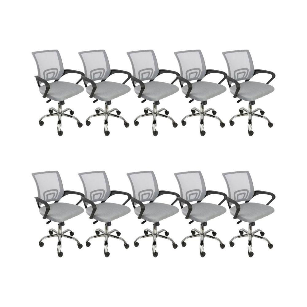Kit 10 Cadeiras De Escritório Begonia Mesh Ergonômico Cinza