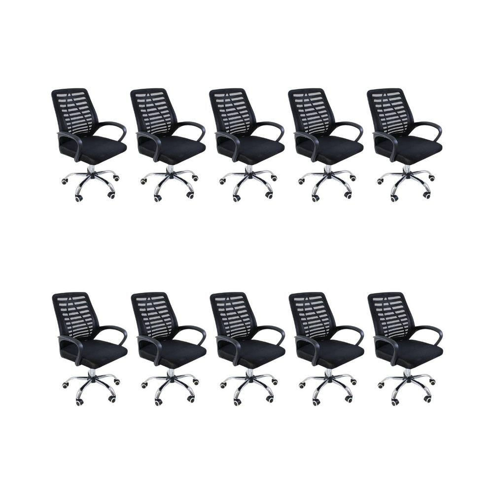 Kit 10 Cadeiras De Escritório Esteirinha Mesh Ergonômica Giratória Preto