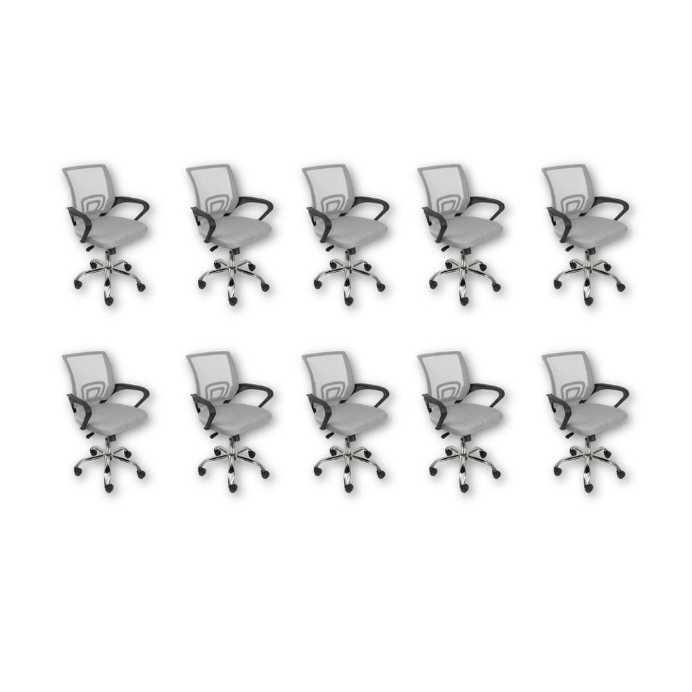 Kit 10 Cadeiras De Escritório Oficial Begonia Tela Mesh Ergonômica Cinza