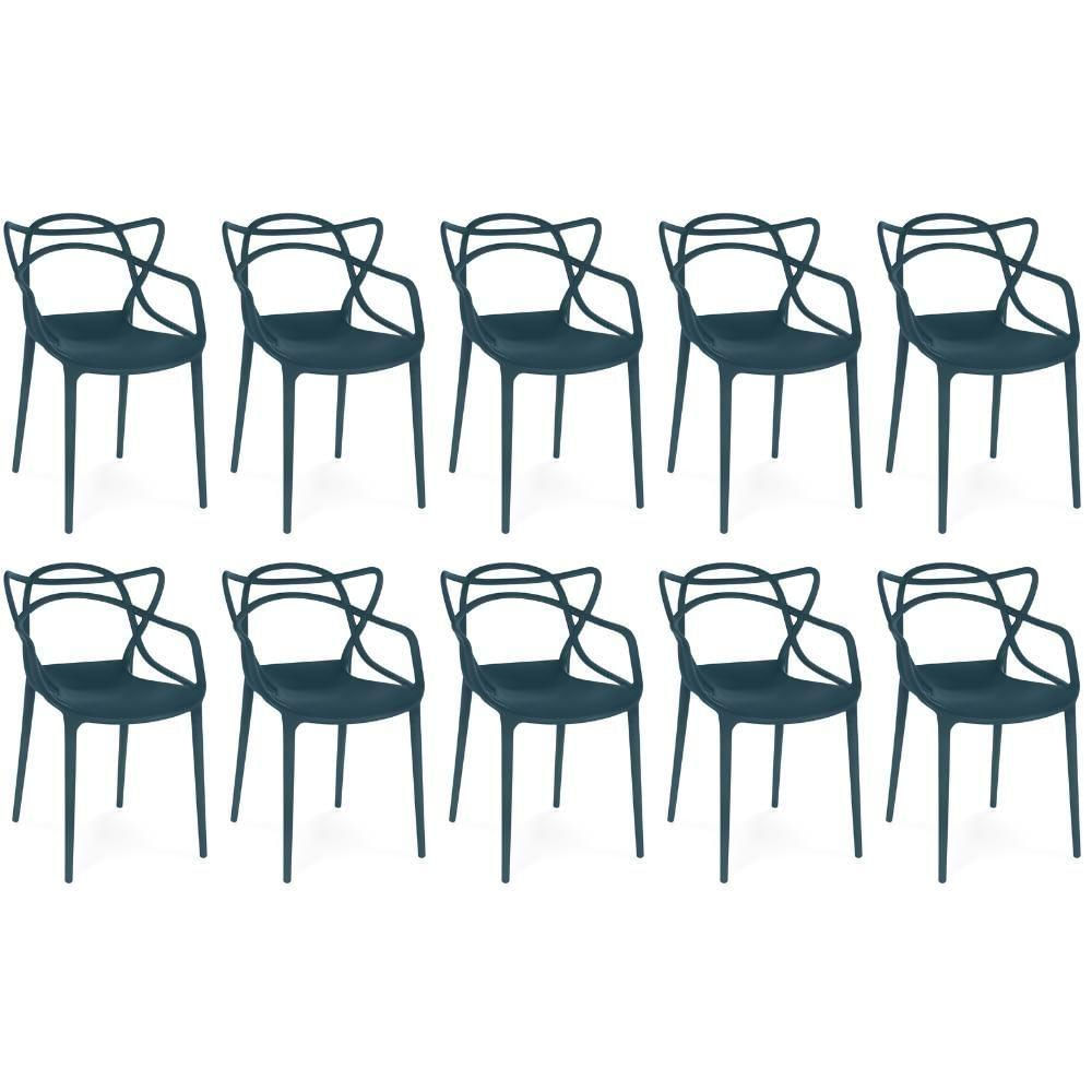 Kit 10 Cadeiras De Jantar Allegra Design Empilhável - Azul Marinho