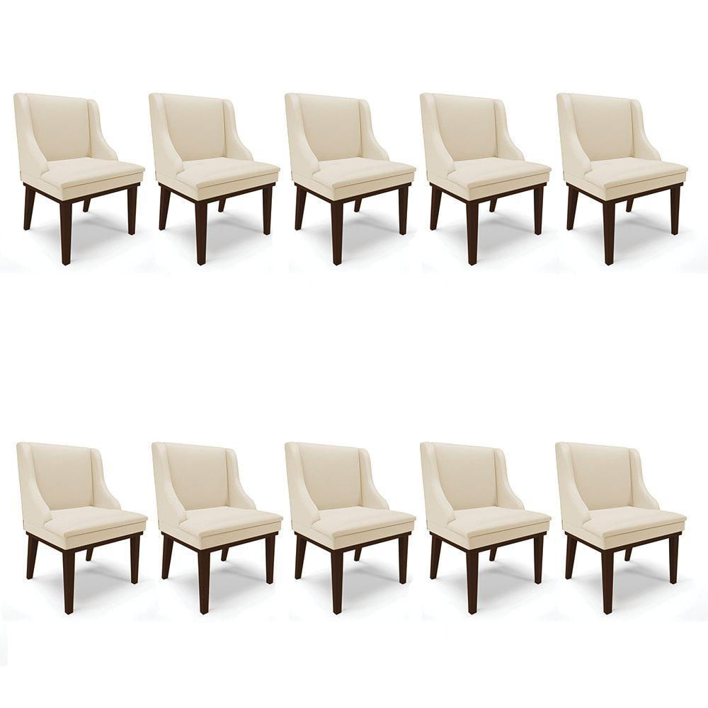 Kit 10 Cadeiras De Jantar Liz Corino Base Fixa Madeira Tabaco - D'rossi Cor Bege
