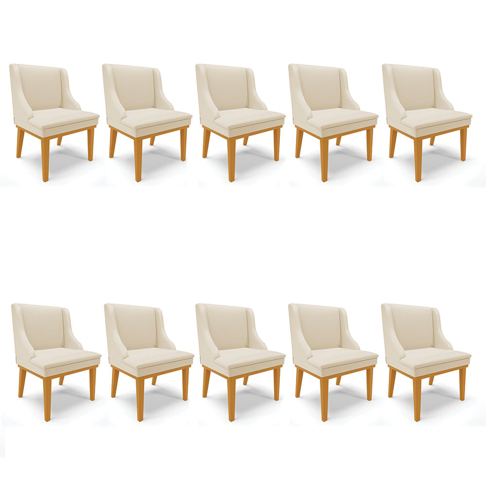 Kit 10 Cadeiras de Jantar Liz Corino Bege Base Fixa Madeira Castanho D03 - D'Rossi