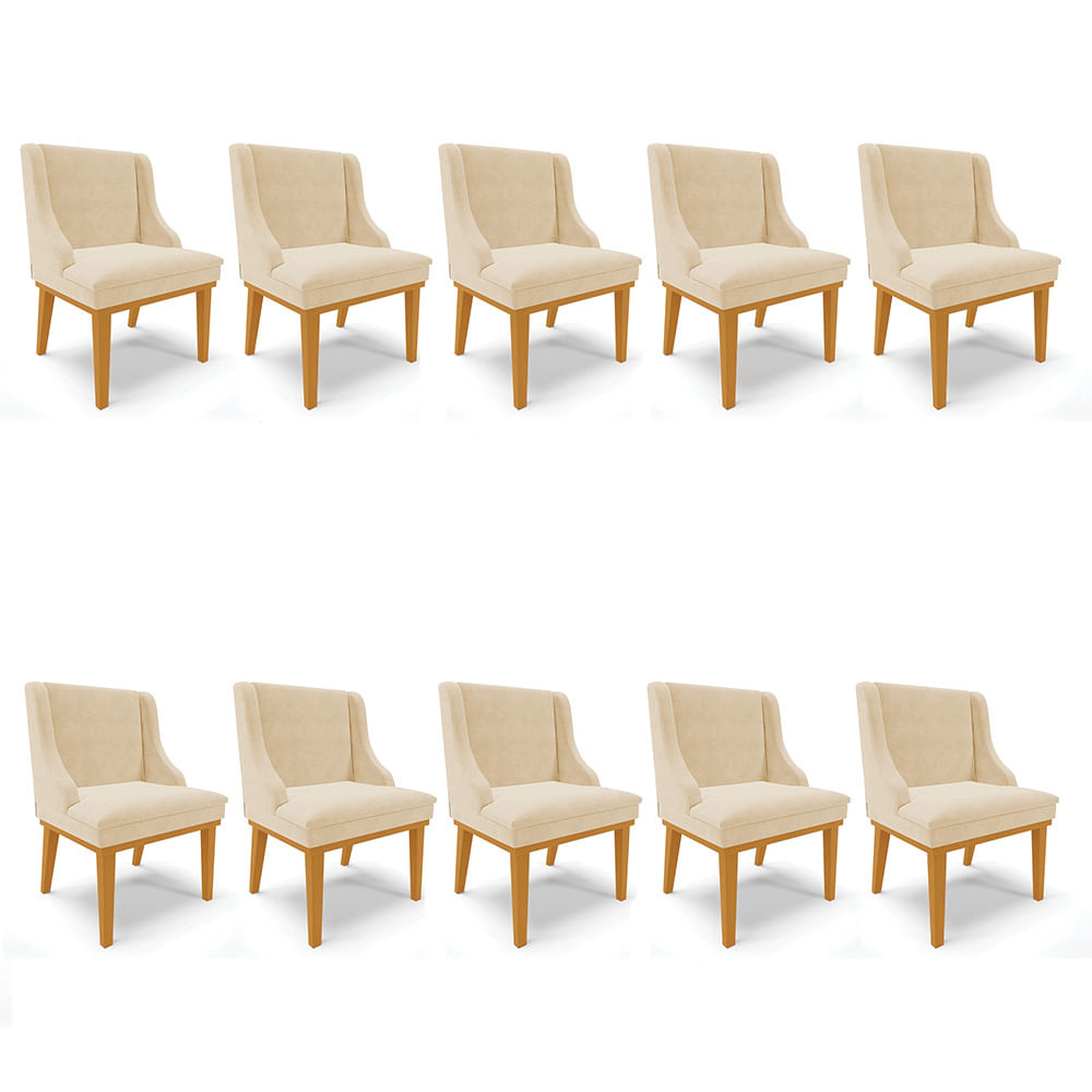 Kit 10 Cadeiras de Jantar Liz Suede Bege Base Fixa Madeira Castanho D03 - D'Rossi
