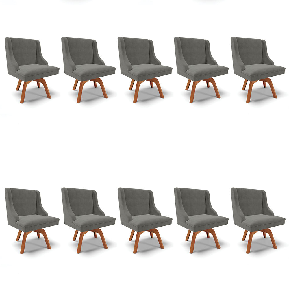 Kit 10 Cadeiras de Jantar Liz Suede Grafite Base Madeira Mm35 D03 - D'Rossi
