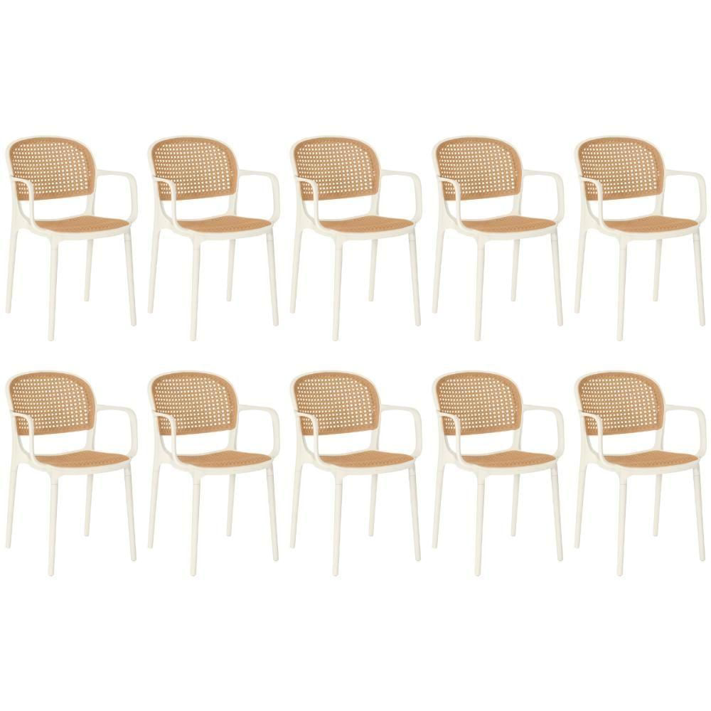 Kit 10 Cadeiras De Jantar Roma Prática Com Braços Para Sala E Cozinha - Bege