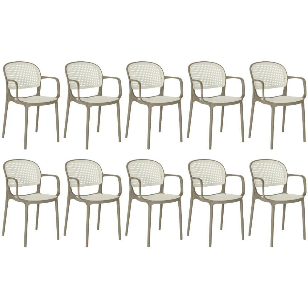 Kit 10 Cadeiras De Jantar Roma Prática Com Braços Para Sala E Cozinha - Branco/cinza Escuro
