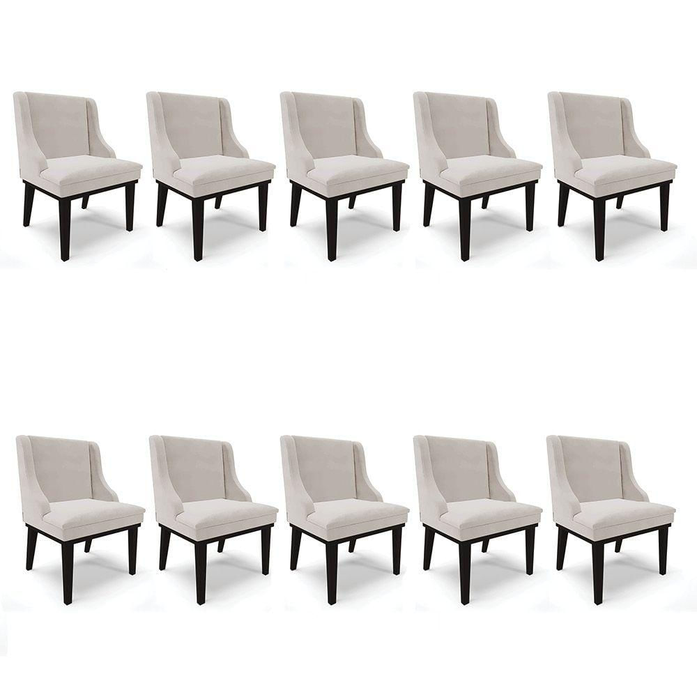 Kit 10 Cadeiras Liz Veludo Cinza Base Fixa Madeira Preto -