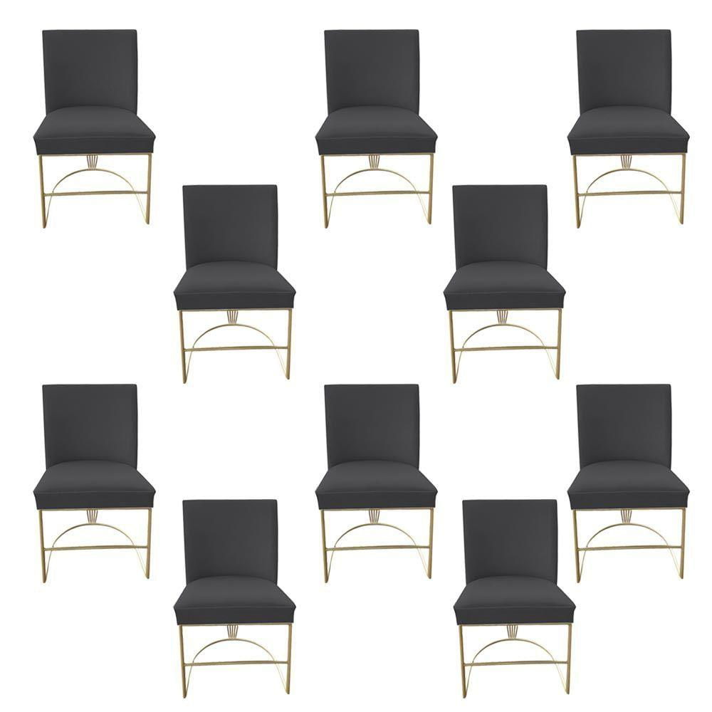 Kit 10 Cadeiras Toquio Base De Ferro Tubo Redondo Compose Sued Grafite Com Corano Nozes Dclasse Decor