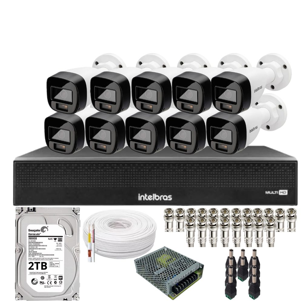 Kit 10 Câmeras Intelbras 1120b Full Color, Dvr 16ch Mhdx 1016c Hd 2tb