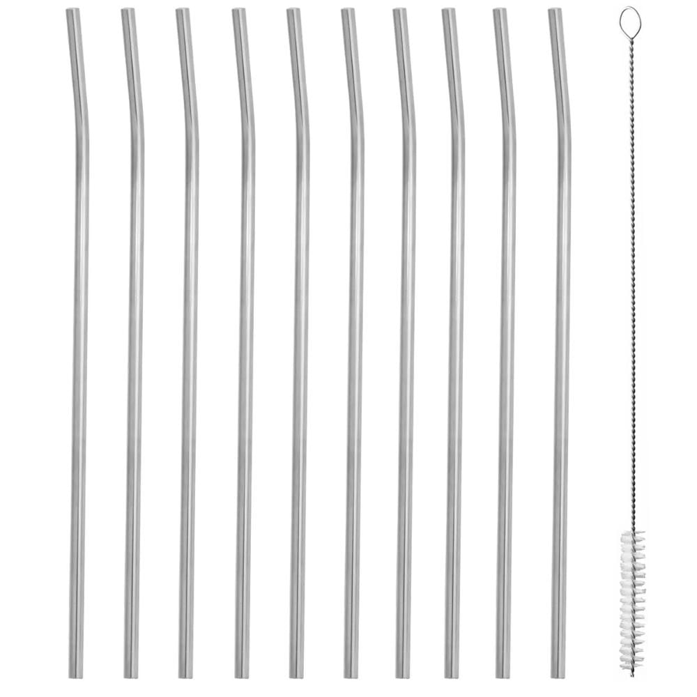 Kit 10 Canudos Inox Sustentável Curvado 5mm Escovinha