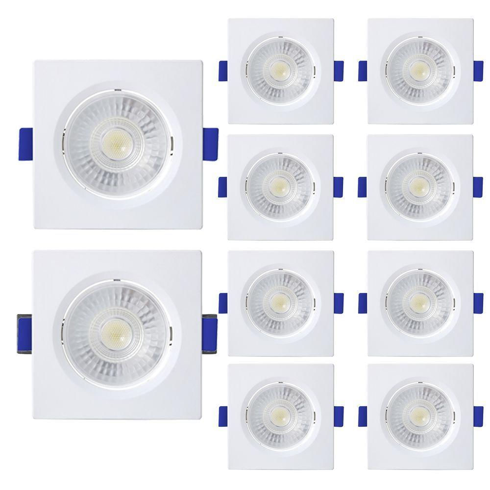 Kit 10 Spot De Led Embutir Slim Mr16 Quadrado 6w Bivolt 3000k Quente