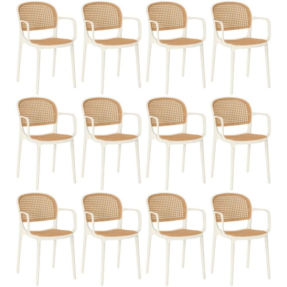 Kit 12 Cadeiras De Jantar Roma Prática Com Braços Para Sala E Cozinha - Bege