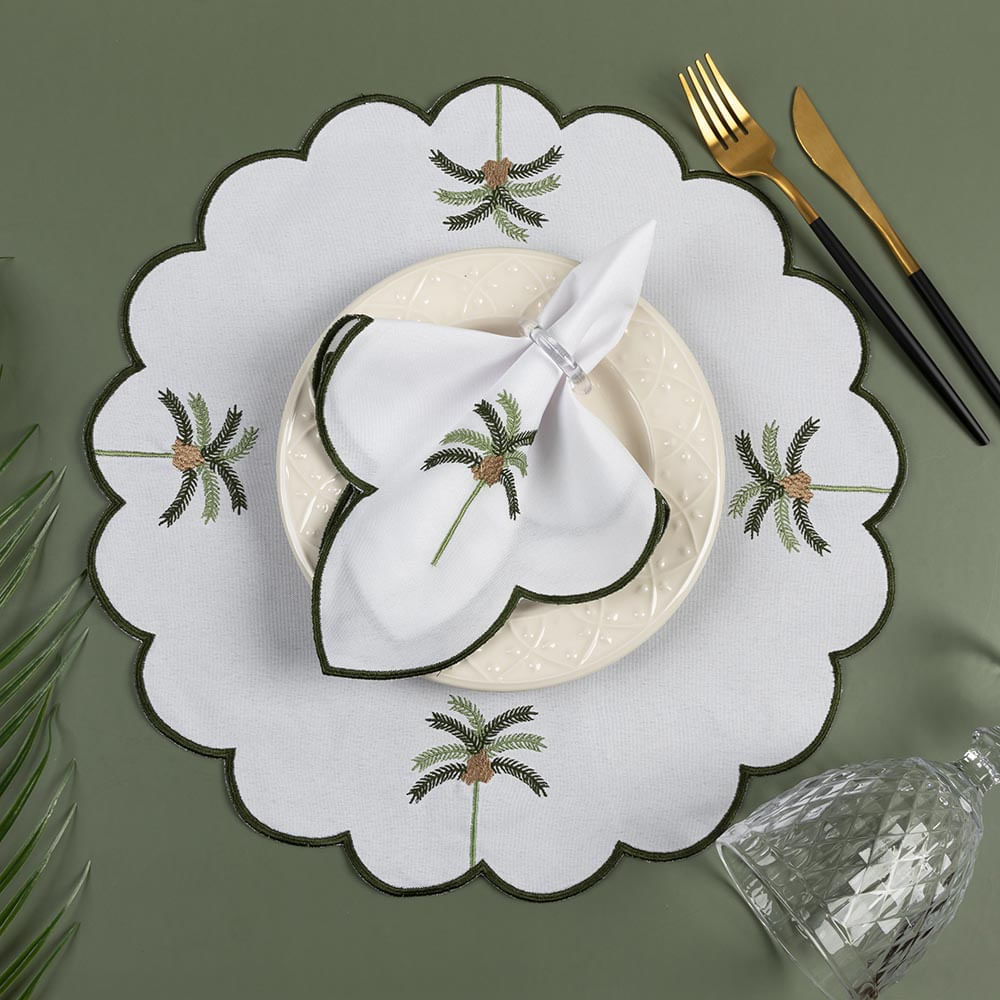 Kit 12 Jogos Americanos Guardanapos De Mesa Redondo Bordado Tropical - Branco